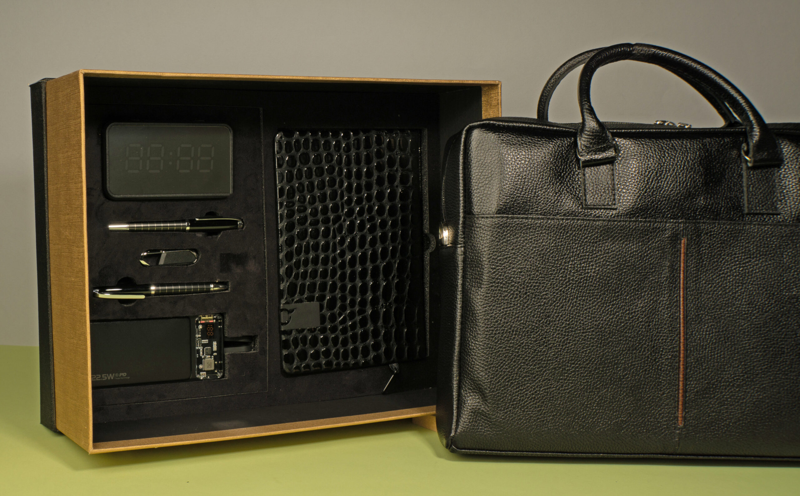 اسپیکر ساعت دار{کیف چرم مدیریتی
